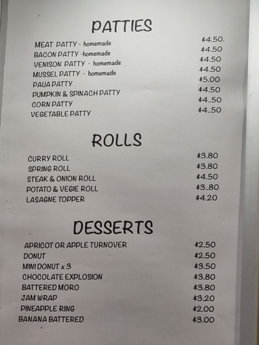 Salisbury Takeaways offers a diverse and tempting menu, with a range of options that cater to various tastes. For burger lovers, the Beef Burger, Cheese Burger, and Chicken Burger are solid choices, while those looking for something more indulgent can enjoy the Bacon & Egg Burger or Fish Burger. For a sweet treat, the restaurant serves a selection of Apricot or Apple Turnovers, Mini Donut x3, and the rich Chocolate Explosion, alongside the crispy Battered Moro and Jam Wrap. Gluten-free options are available, including Chips, Kumara Chips, and Fish varieties such as Gurnard and Flounder. Families will appreciate the Kids Meal Deals, with the Kids Deal Five offering a satisfying choice for younger diners. If you're in the mood for something special, the Gourmet Burgers such as the Avocado & Beef, Barbecue Bacon Cheddar, and Chicken Bacon Pineapple offer a delicious twist on classic flavors. The Chicken Supreme and Cod Burger round off the premium selections. Additionally, Salisbury Takeaways provides a range of Meat Patty, Bacon Patty, and even more unique options like Venison Patty, Mussel Patty, and Paua Patty. With such a varied menu, there's something to satisfy every craving at Salisbury Takeaways.